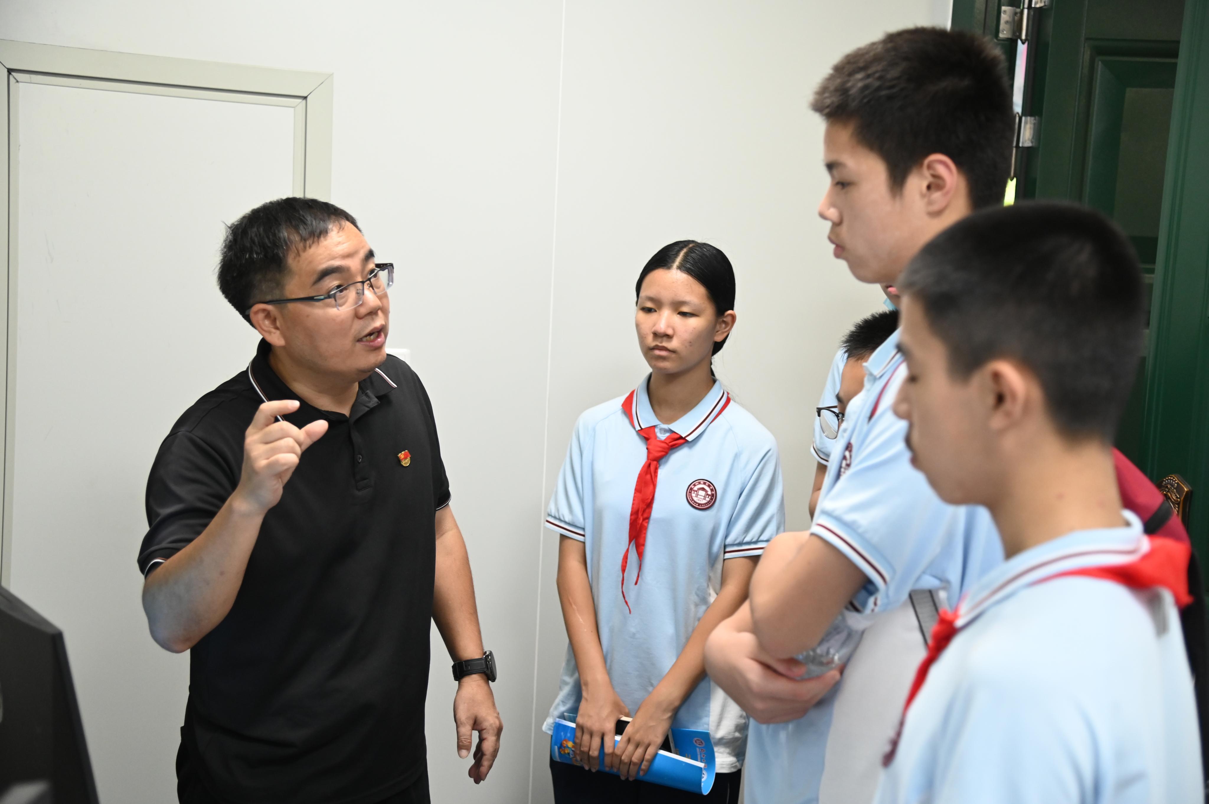 在福建省先进无机氧合材料重点实验室,蔡平伟老师与志愿者向同学们展示了一系列应用于新能源电池、生物传感器等前沿研发领域的核心工具,包括能营造无氧无水洁净环境、保障样品操作纯净度的手套箱;可模拟极端温变环境、助力电池稳定性测试的高低温变温箱;揭示反应机理的精密测控平台电化学工作站;贯穿传感器全生命周期、提供质量保障与数据支撑的气敏传感器测试系统;以及能对电池进行高精度充放电测试与循环寿命评估的武汉蓝电电池测试系统等。讲解过程中,老师们还巧妙结合生活中的常见小物件,将抽象的电池基本原理和相关科学知识,以生动形象的方式呈现给同学们,让大家轻松理解并深刻记忆。